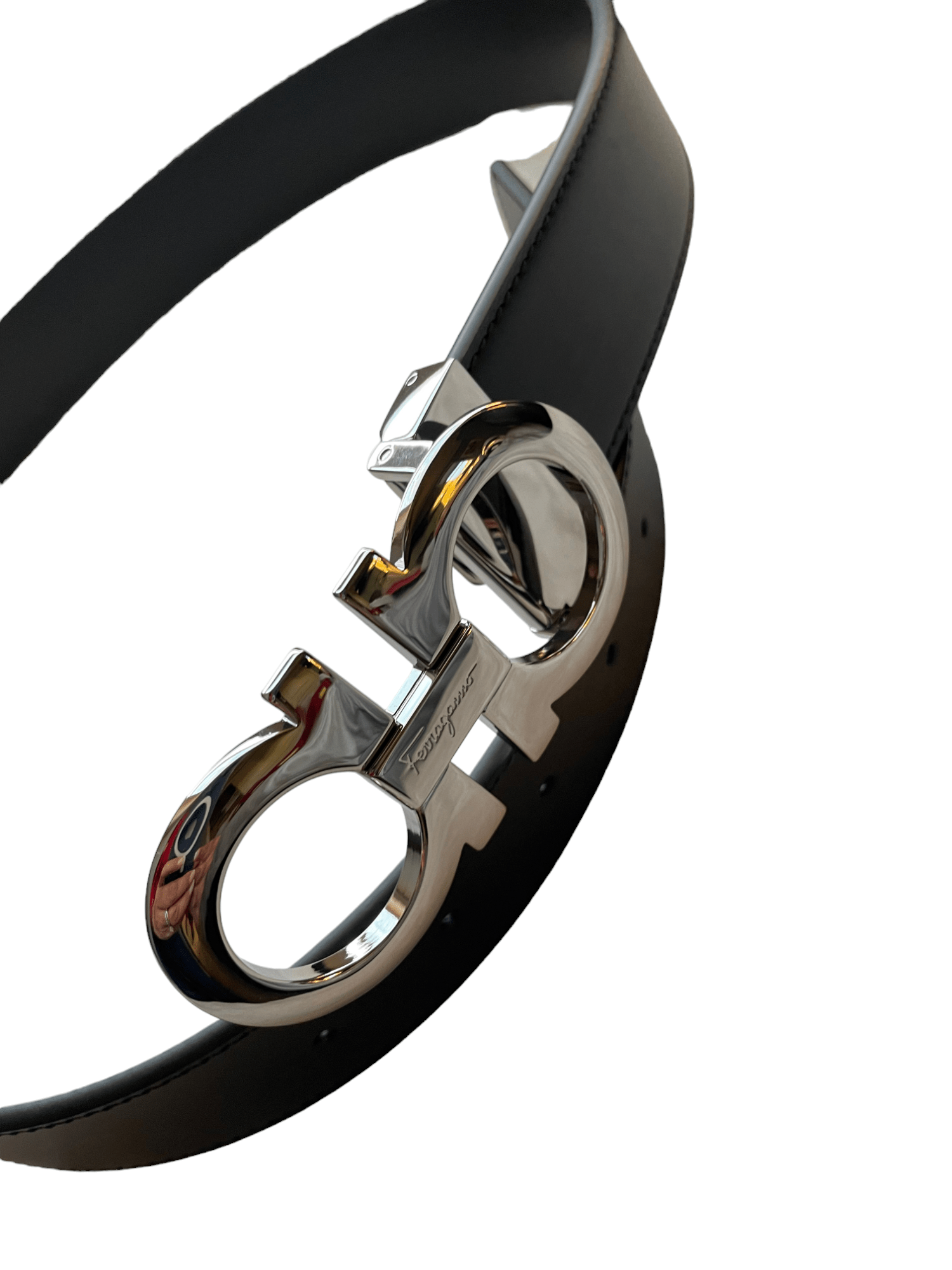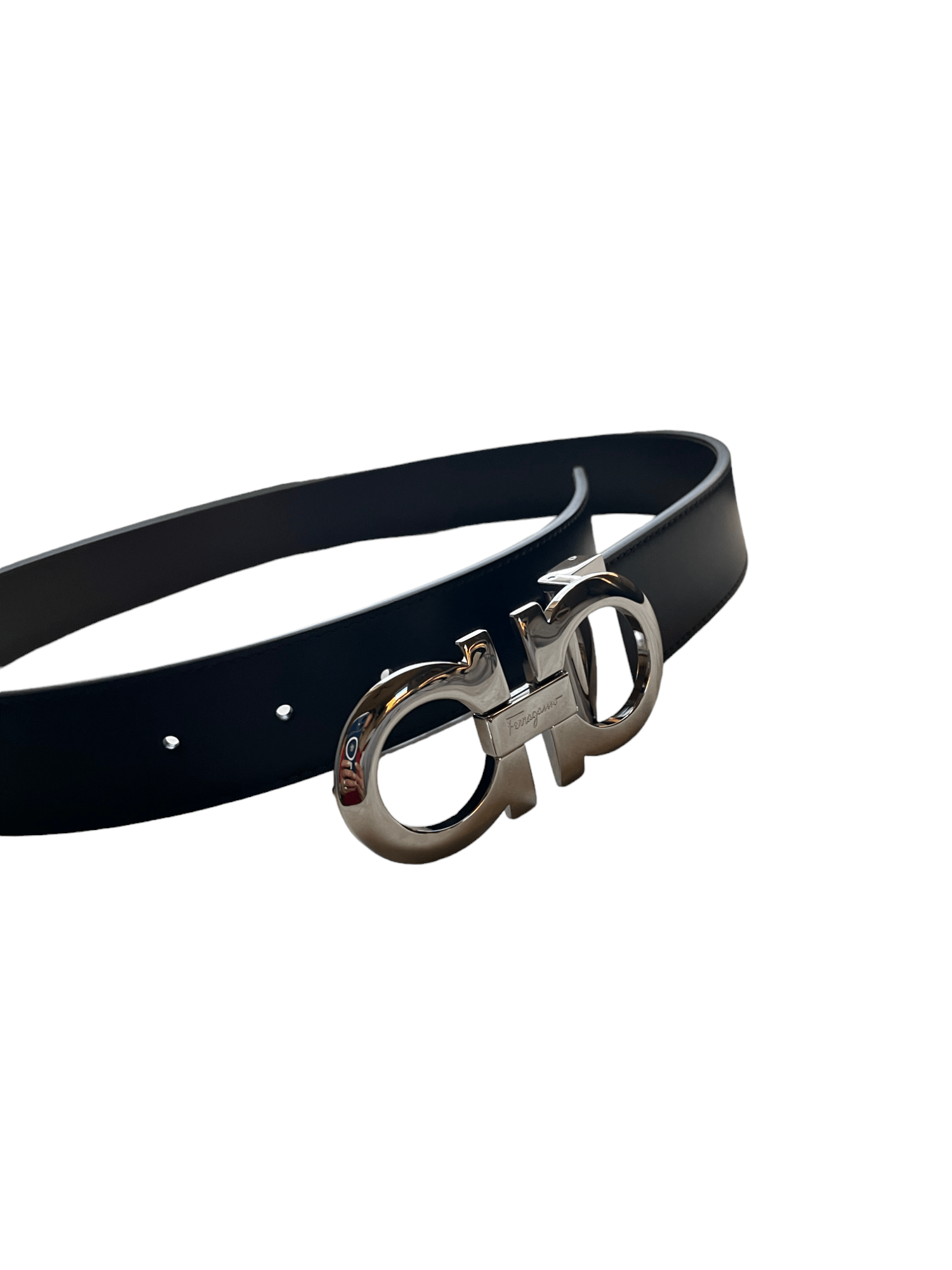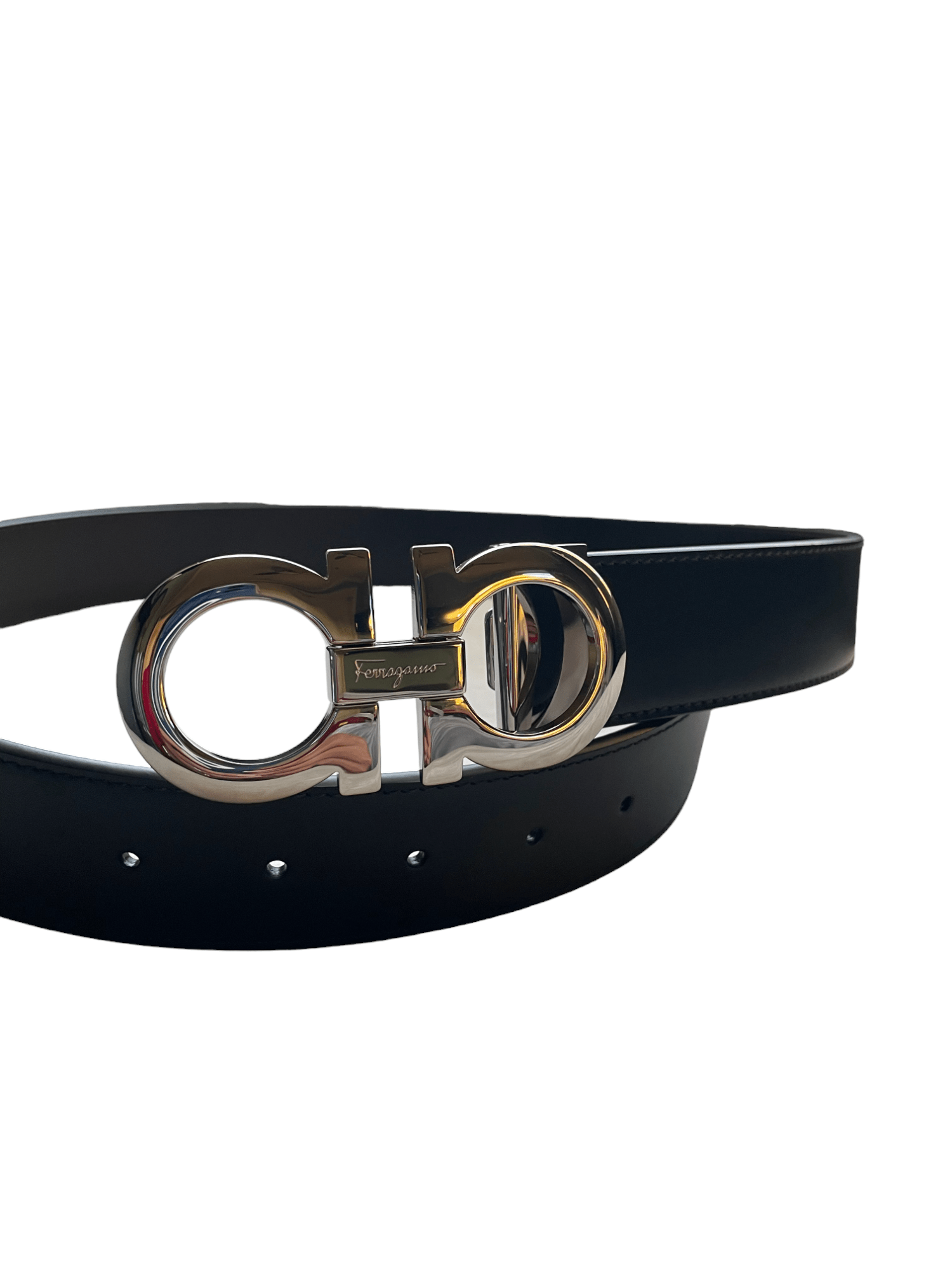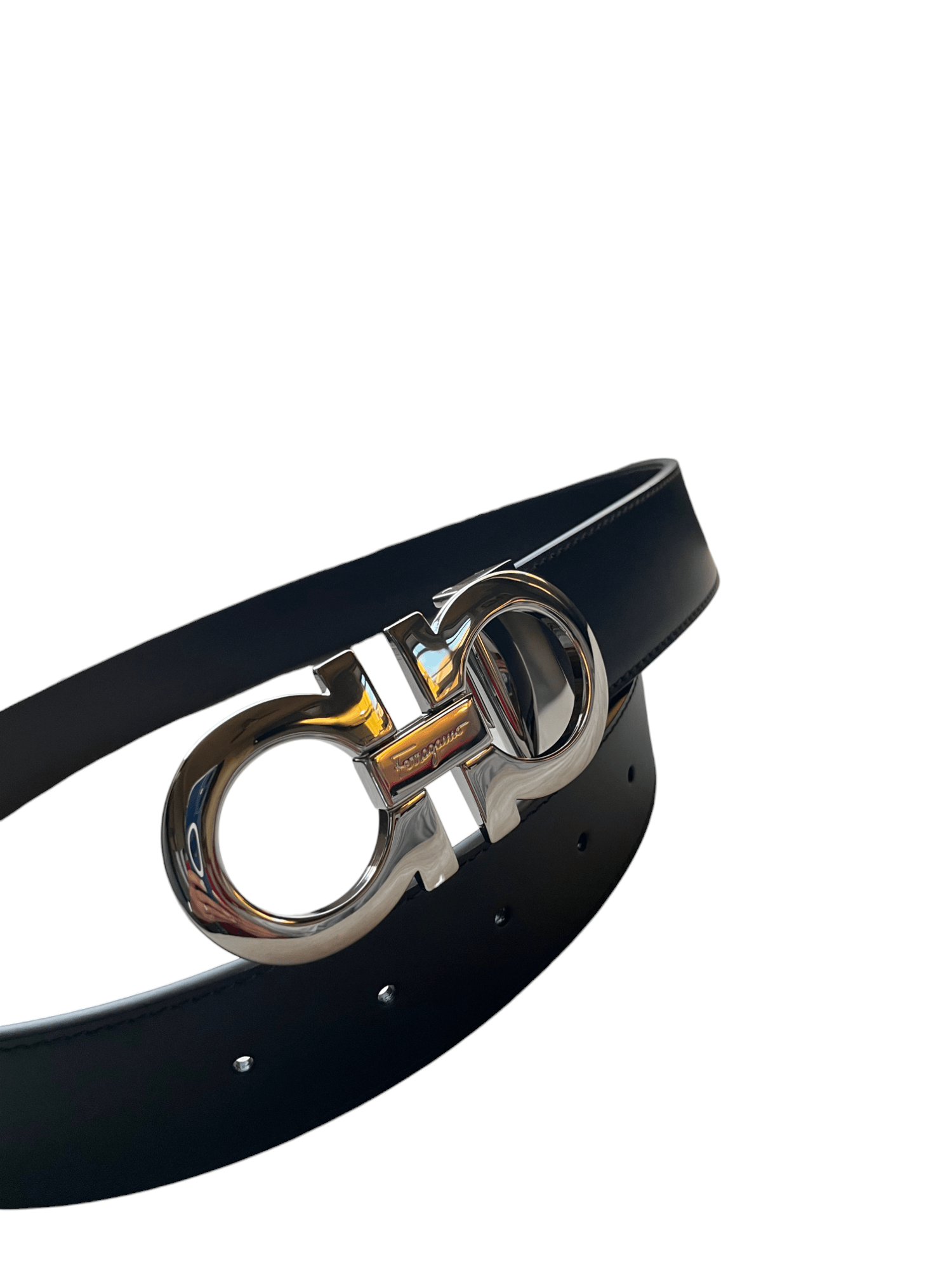 Salvatore Ferragamo Reversible/Adjustable Belt Polished Silver Buckle