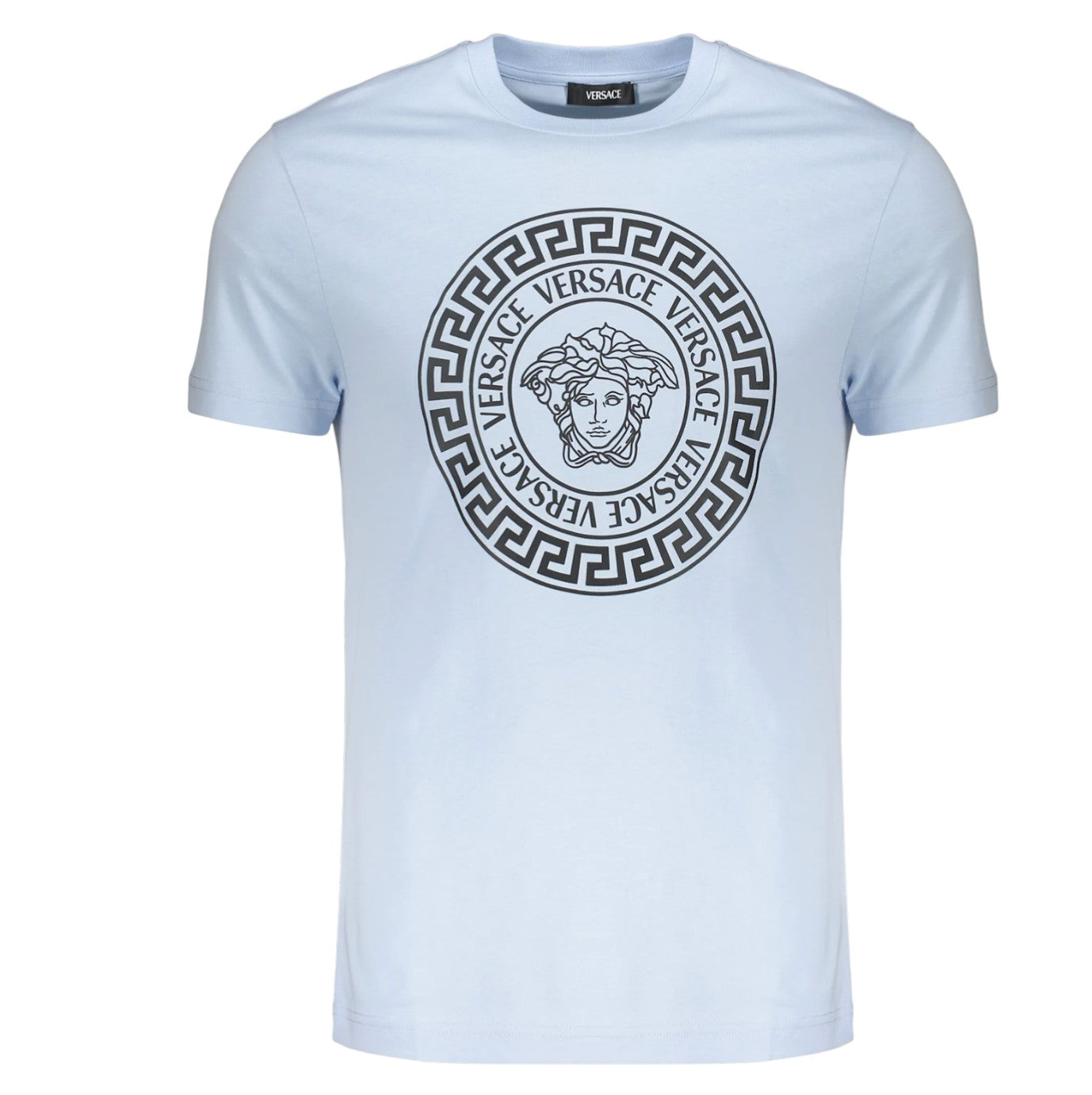 Versace Men’s Printed Medusa Cotton-Jersey T-Shirt in Light Blue – Style 10118611A12076-2VI70