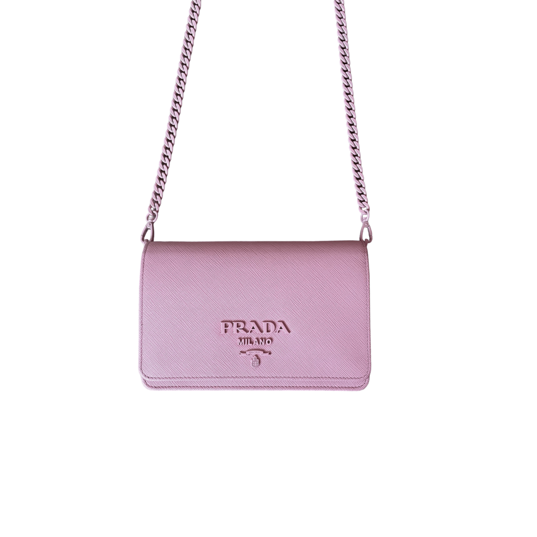 - Tonal Logo on the flap and tonal chain matching the bag color