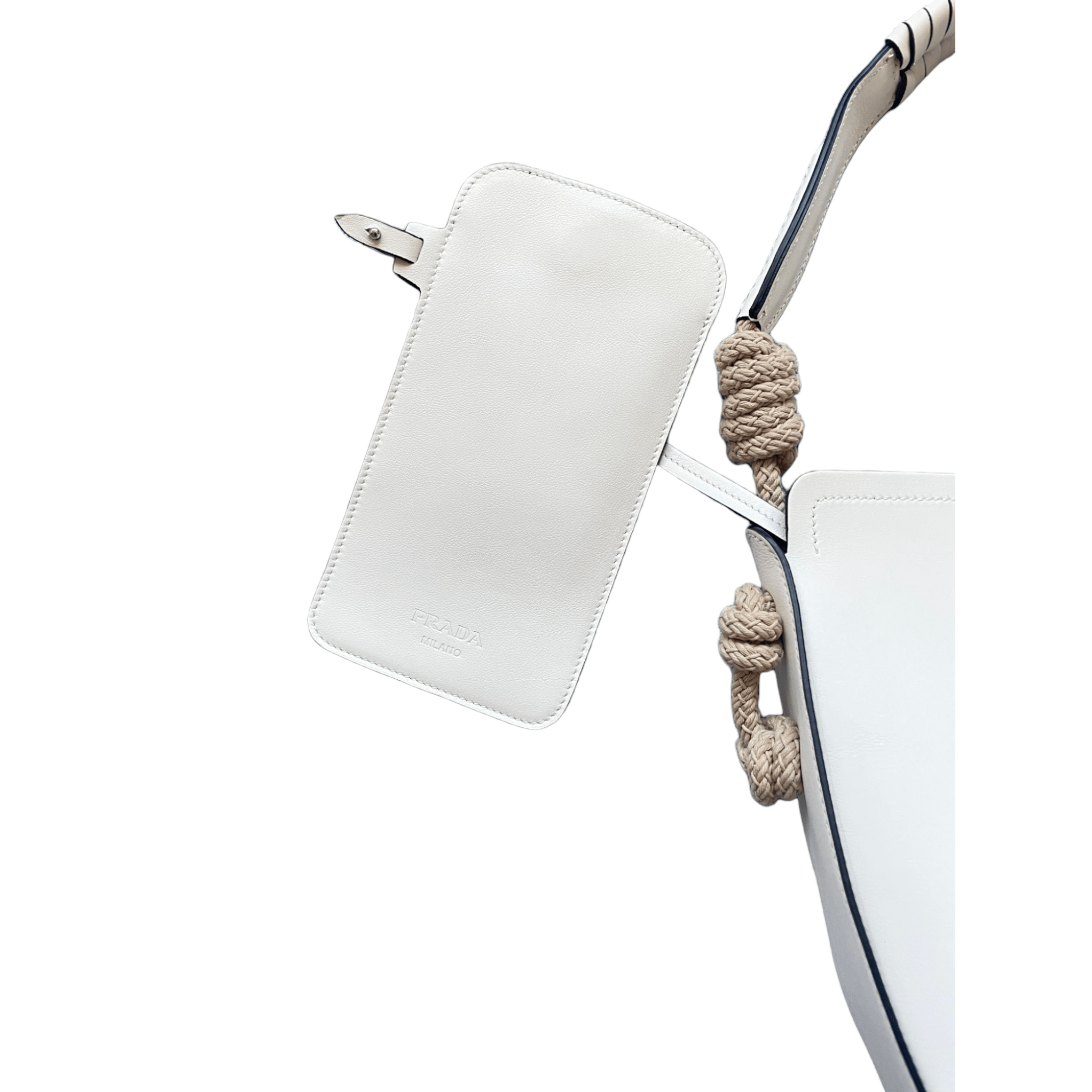 Prada Shoulder Bag Vitello Lux Leather, White/Black