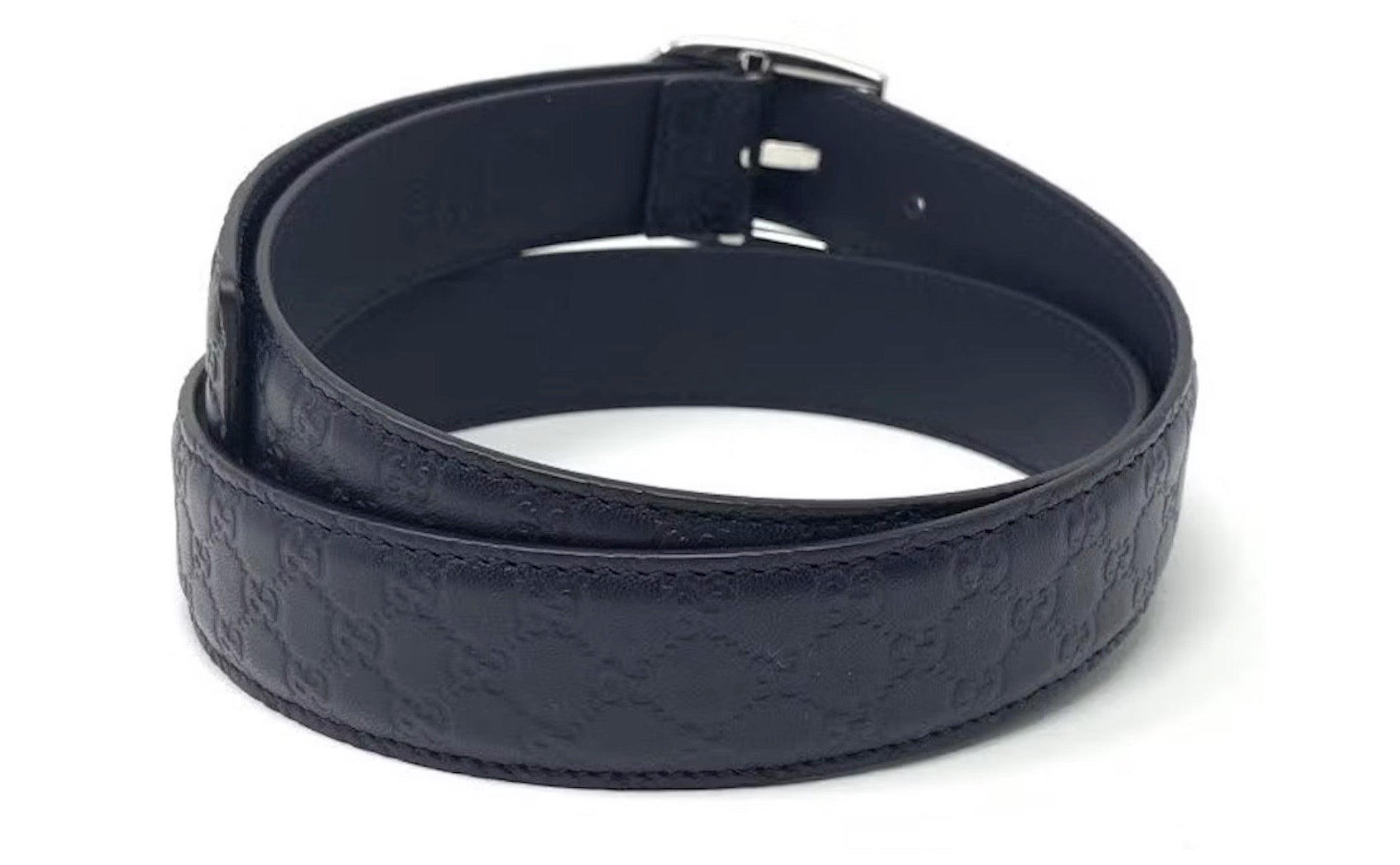 Gucci Signature Leather Skinny Belt with Rectangular Buckle, Navy Blue